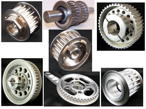 Custom synchronous belt pulleys allow the end user to design a custom timing belt pulley to match their specific needs. This eliminates the frustrations often caused by trying to modify a off the shelf timing belt gear pulley. Additional custom synchronous belt pulley design resources have been made available by Pfeifer Industries within the following sections custom timing belt pulley design form and timing belt pulley design features. Pfeifer Industries specializes in producing sub-minimal tooth count timing belt pulleys. We are able to produce 8mm pitch pulleys down to 14 teeth. We also take pride in being able to maximize weight reduction in the timing belt gear pulleys we produce thanks to our vast knowledge of the demands required by the various racing applications that we support with our products.