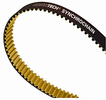 The SynchroChain urethane timing belt incorporates the newly developed CTD timing belt tooth profile which is 100% compatible with the Gates® PolyChain GT® timing belt tooth profile. This allows for drop-in replacement of a Gates® PolyChain GT urethane timing belt. The SynchroChain plastic timing belt also features premium material usage and construction ensuring reliable mechanical power transmission for high torques and high dynamic stressing. As the first urethane timing belt designed for extreme heavy duty requirements it permits reverse flexing in multi timing belt pulley drives and is the optimum alternative to chain drives and the Gates® PolyChain GT timing belt. Pfeifer Industries also distributes Gates, Opti Belt, Goodyear (Veyance Technologies, Inc.) and Mitsuboshi (MBL) timing belts and mechanical power transmission products.